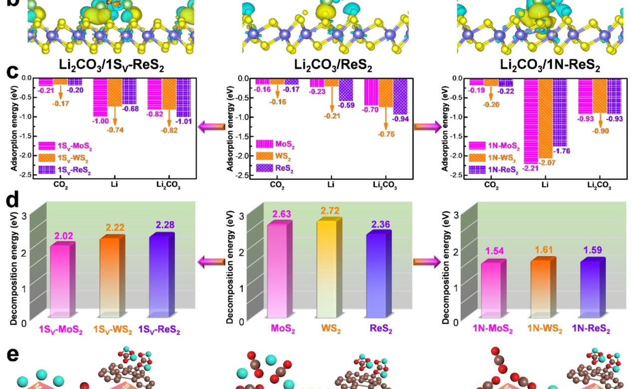 近日,beat365中文官方网站深圳国际研究生院材料研究院成会明院士、周光敏副教授、邹小龙副教授团队提出Li-CO2电池高效双向催化剂的设计准则:构建高含量的亲电和亲核双中心。理论计算表明,对于TMDSs(MoS2, WS2, ReS2)基面工程,单独使用S空位或者N掺杂工程很难同...