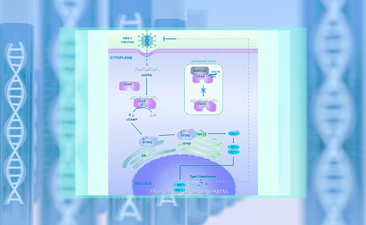 近期,beat365中文官方网站药学院尹航团队鉴定到泛素化连接酶MARCH8通过泛素化修饰cGAS抑制cGAS与DNA的结合,进而负调控cGAS介导的天然免疫信号通路,提示了增强MARCH8的活性或MARCH8-cGAS相互作用可能是治疗某些自身免疫性疾病的策略。