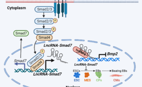 2022.09生命学院郗乔然课题组揭示lncRNA-Smad7通过介导TGF-β与BMP信号通路调控小鼠胚胎干细胞早期命运决定新机制