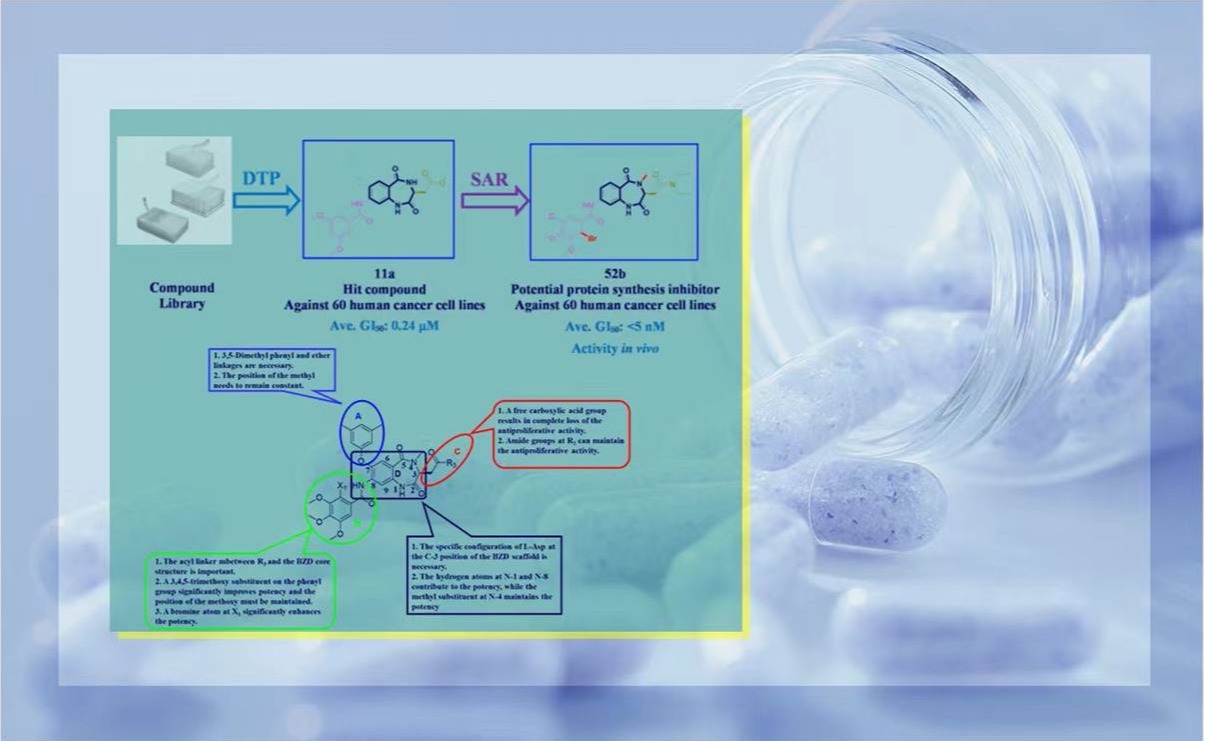 近日,beat365中文官方网站药学院刘刚教授课题组首次发现了一类基于1,4-苯并二氮杂卓-2,5-二酮优势骨架的化合物作为蛋白质合成抑制剂用于癌症治疗方面的潜在用途。