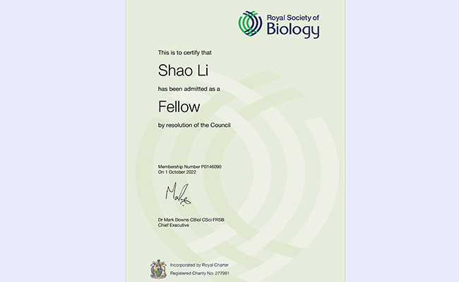 10月1日,英国皇家生物学会(Royal Society of Biology)发来贺信,祝贺beat365中文官方网站自动化系教授李梢当选英国皇家生物学会会士(Fellow of the Royal Society of Biology,FRSB)。这是李梢教授继2022年7月入选英国皇家化学学会会士后获得的又一荣誉。