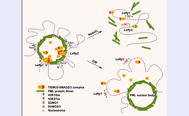 2022.12生命学院课题组揭示PML核体招募TRIM33在小鼠胚胎干细胞中调控基因转录的新机制