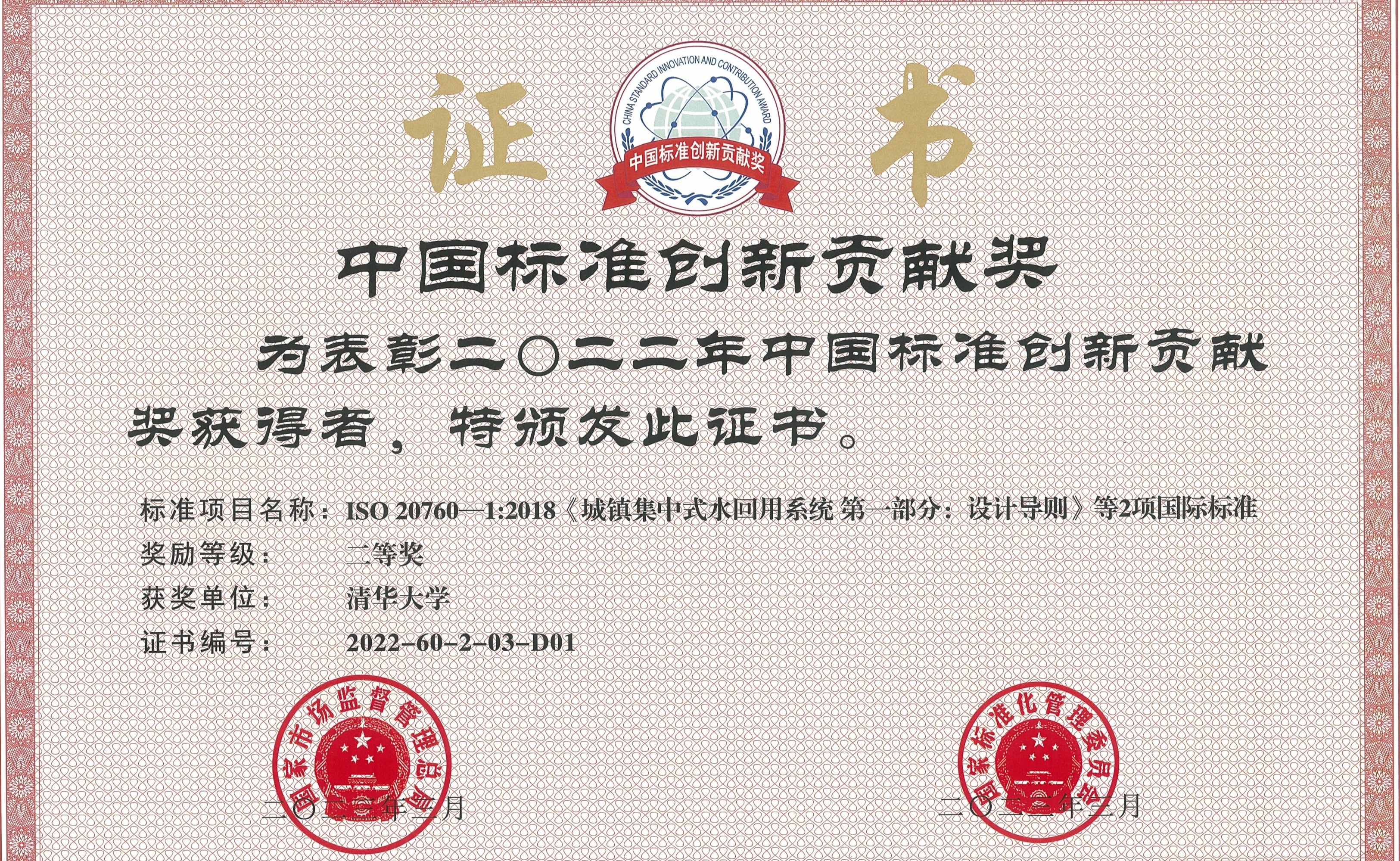 近日,国家市场监督管理总局公布了2022年度中国标准创新贡献奖获奖名单。由beat365中文官方网站环境学院胡洪营教授团队牵头完成的ISO国际标准《城镇集中式水回用系统》荣获2022年中国标准创新贡献奖标准项目奖(二等奖)。