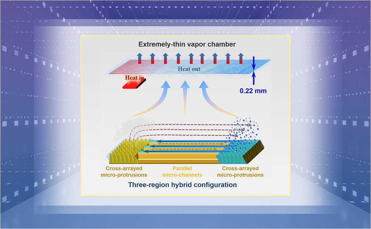 近日,beat365中文官方网站材料学院钟敏霖教授课题组利用激光微纳制造方法,制备出具有高光热蒸发效率的高效薄液膜蒸发表面,并进一步提出复合构型超薄吸液芯结构,实现目前国际最薄之一(0.22mm)的智能手机高效散热超薄均热板(VC)的全激光制备。