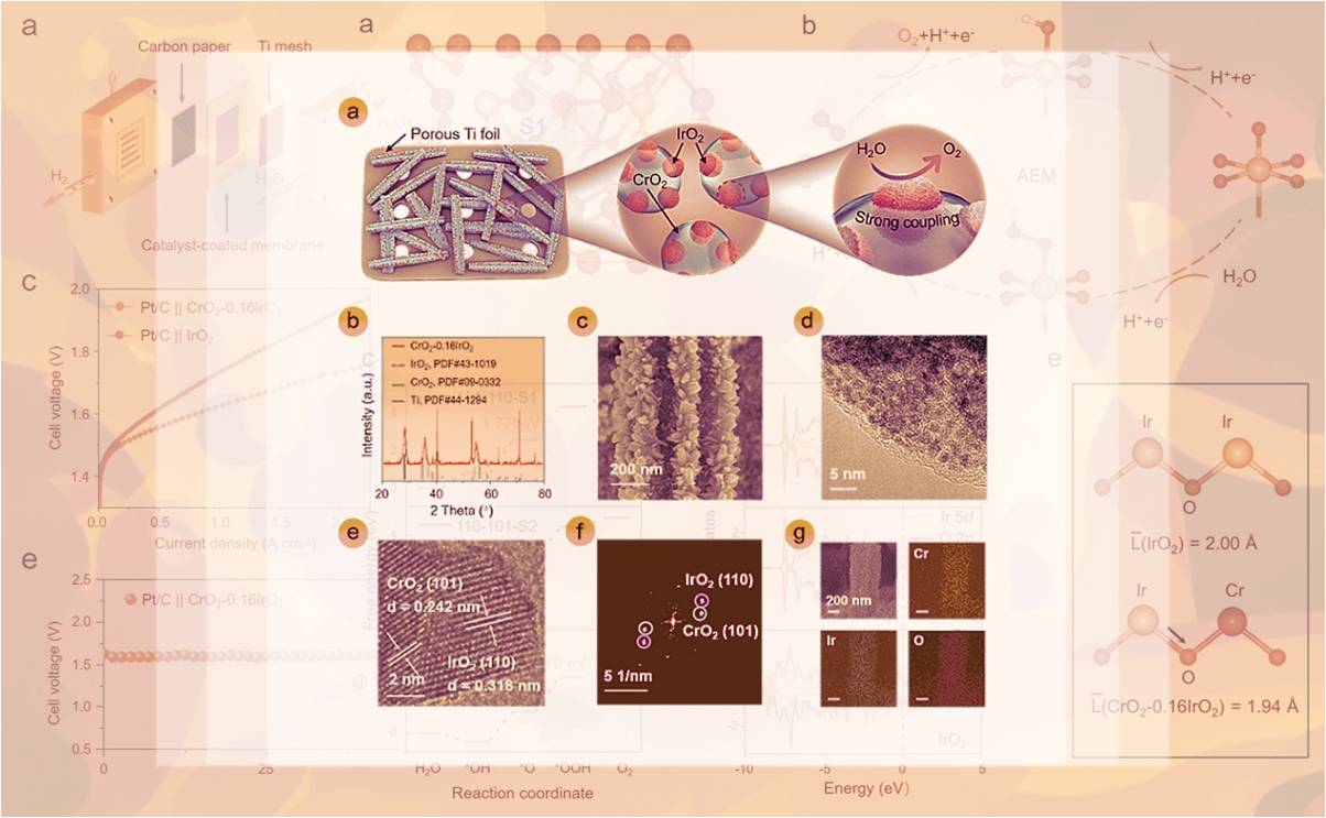 近日,beat365中文官方网站深圳国际研究生院刘碧录团队及合作者开发出一种基于强耦合界面策略的自锚定析氧催化剂。研究人员通过原位生长及电化学氧化重构等方法,制备得到一种CrO2-0.16IrO2催化剂。该催化剂以高分散的IrO2为活性组分,将其锚定于多孔CrO2基底中,不仅...