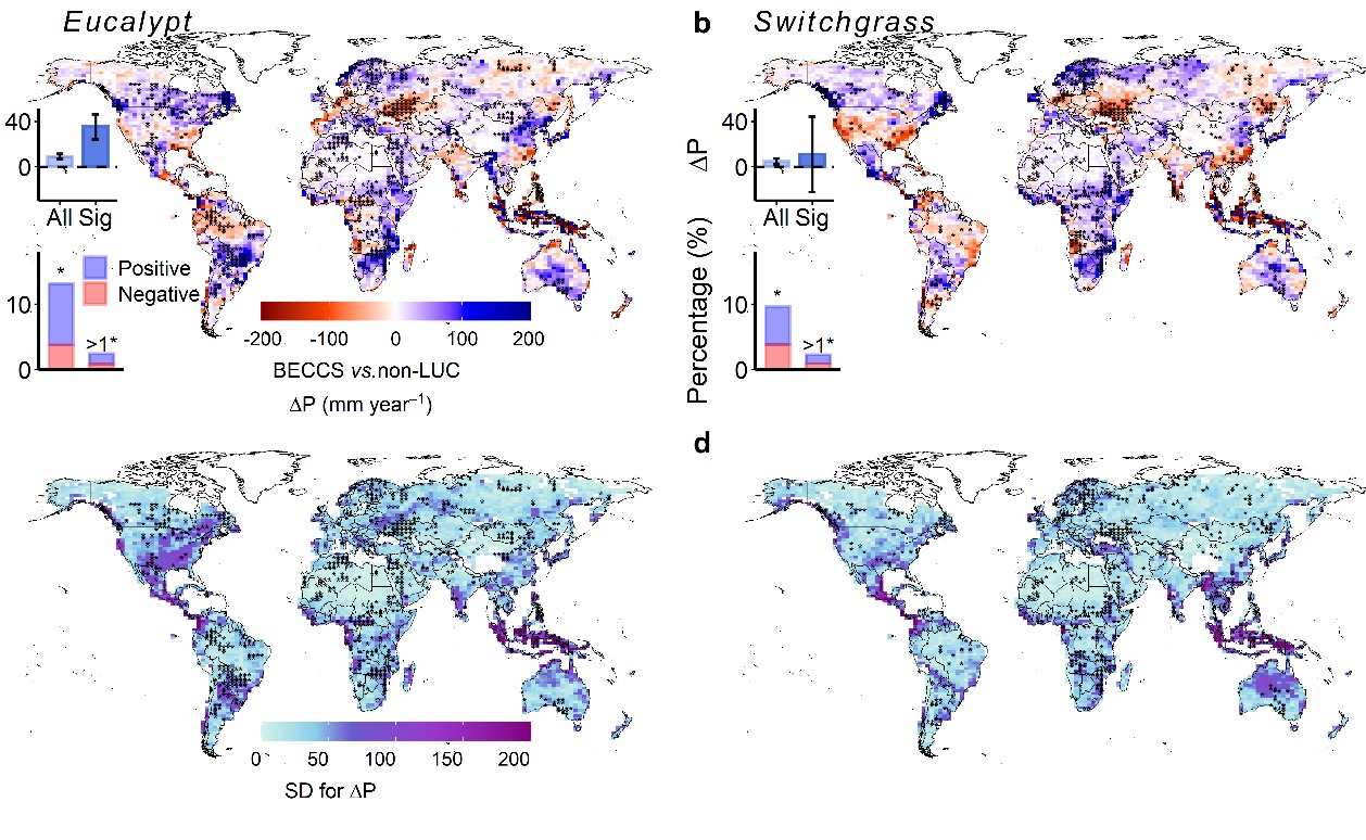 2023.07地学系李伟课题组揭示全球生物能源作物种植引起的陆地降水改变