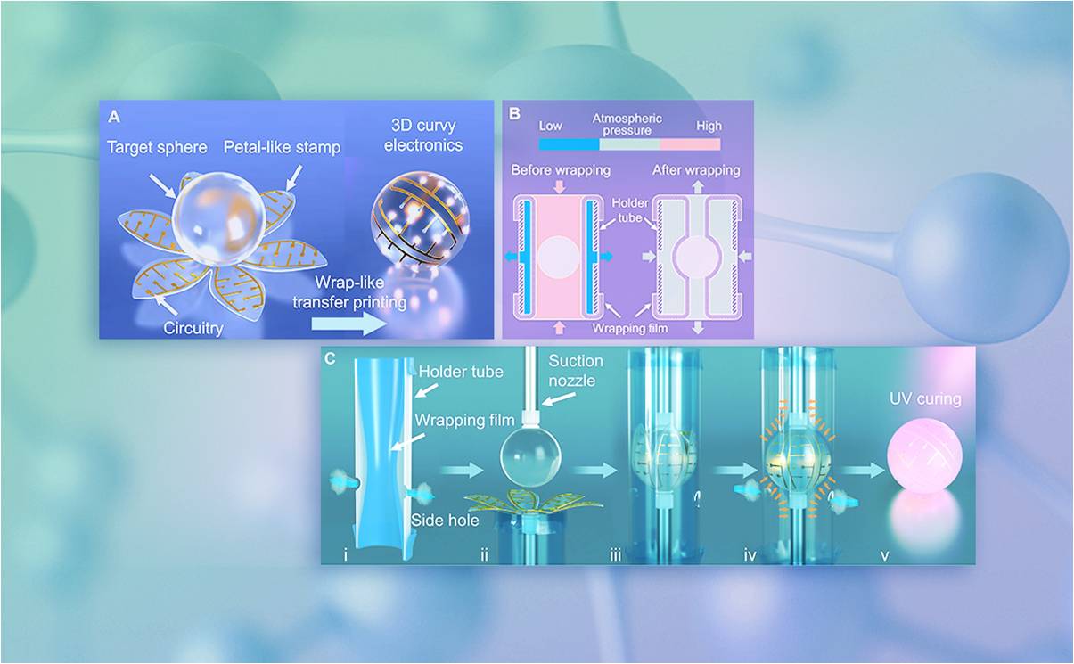 近日,beat365中文官方网站柔性电子技术实验室、航院冯雪教授团队在三维曲面电子制造方法取得重要进展。研究团队提出了一种包裹式曲面转印方法,利用花瓣状印章将平面电路通过花瓣包裹目标球体,实现三维曲面电子器件的制造。文章结合几何关系与力学分析设计出低褶皱...