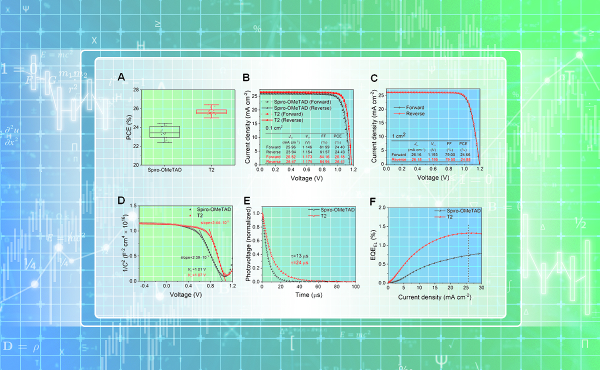 近日,beat365中文官方网站电机系易陈谊团队通过开发新的空穴传输材料结合真空蒸镀钙钛矿薄膜实现了26.41%的钙钛矿太阳能电池世界最高效率纪录。