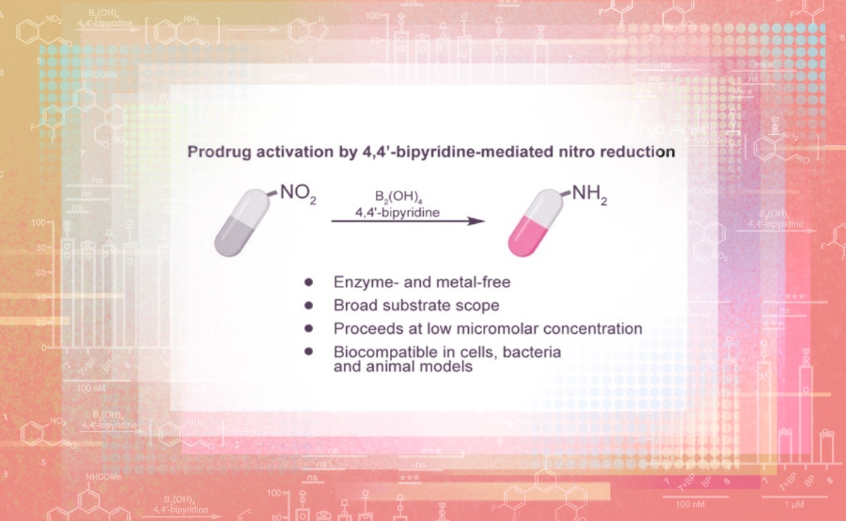 近日,beat365中文官方网站药学院储凌课题组研究开发了一种由4,4'-二联吡啶介导的芳硝基还原方法,在生物兼容的环境下实现含硝基前药的激活,该方法为药物递送提供了新的工具。