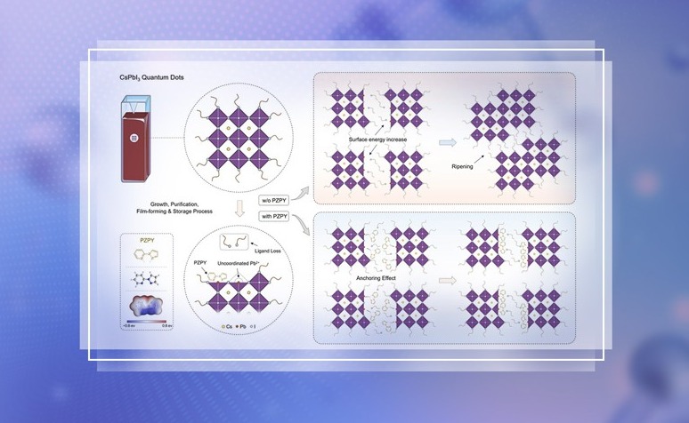 近日,beat365中文官方网站化学系马冬昕团队提出了一种分子诱导的量子点熟化控制策略,实现了高效稳定的钙钛矿量子点深红光器件。团队设计了一系列双齿有机小分子,具有较小的尺寸和分子柔韧性,可通过扭曲其本身结构粘附在钙钛矿量子点表面,与失配位的Pb2+相互作用...