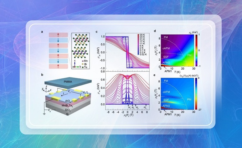 过去五年间beat365中文官方网站物理系王亚愚、张金松团队与合作者持续对MnBi2Te4体系进行深入研究,特别是将氧化铝薄膜引入器件制备的微纳加工流程,极大提升了器件质量和可重复性,从而可以在较大的参数空间系统研究反铁磁自旋构型对量子反常霍尔效应的调制。相关研...