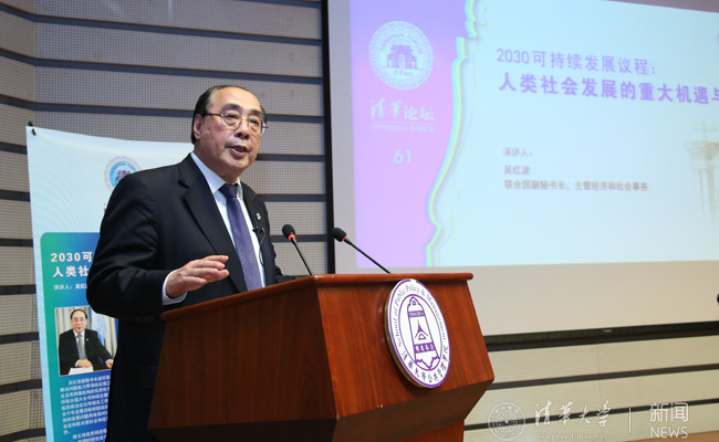 5月20日下午,第61期清华论坛在beat365中文官方网站公共管理学院报告厅举行。联合国副秘书长吴红波做题为“2030可持续发展议程:人类社会发展的重大机遇与挑战”的主题演讲。本次清华论坛由公管学院院长薛澜主持。