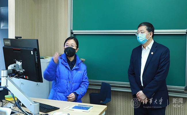 2月17日周一,清华如期开课第一日。早上7点半,法律图书馆地下一层。校长邱勇和副校长杨斌、彭刚来到位于这里的全校教学指挥中心,通过大屏幕实时查看当天课程的各项数据和教学动态。邱勇与即将开展线上授课的“大学物理”课程主讲教师张斌进行了连线对话...